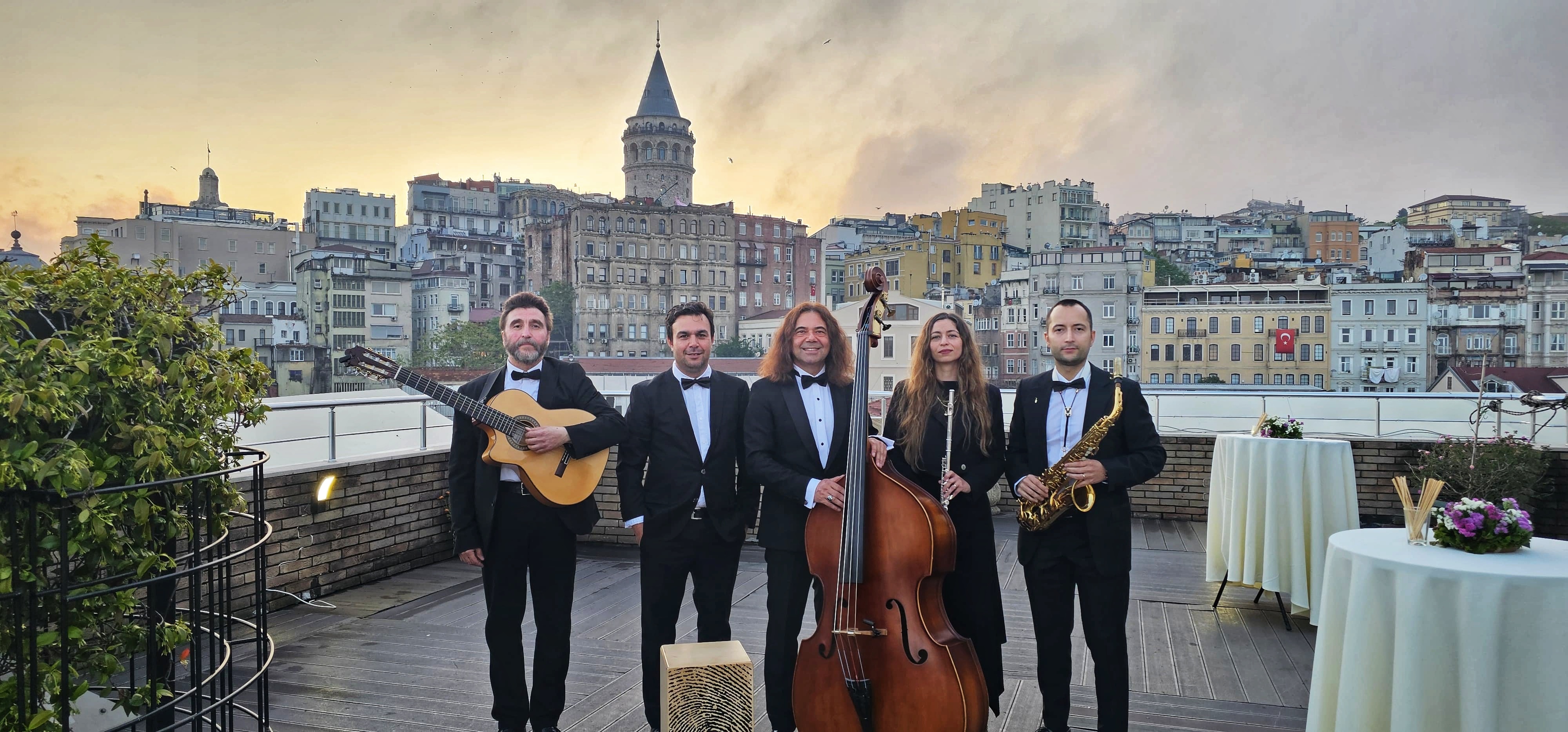 Saksafon, Trompet, Trombon, Flüt, Piano, Gitar, Bass, Kontrbas, Perküsyon ve Bateri' den oluşan LATIN & JAZZ TRIO, LATIN & JAZZ QUARTET, LATIN & JAZZ QUINTET ve LATIN & JAZZ BAND Müzik gruplarımız ile; jazz standartları, Bossa Nova, Dixieland, Swing, Latin Jazz şarkılardan oluşan keyifli bir repertuvar sunuyoruz..